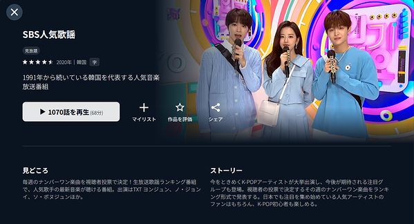 U-NEXTでは「SBS人気歌謡」の過去の放送も配信中!